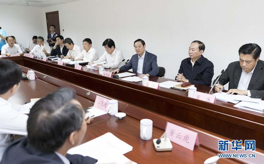 9月22日,中共中央政治局委員、中央書記處書記、中宣部部長(zhǎng)劉奇葆在北京調(diào)研京劇像音像工程情況。這是劉奇葆與有關(guān)方面負(fù)責(zé)同志座談交流。新華社記者 丁海濤 攝