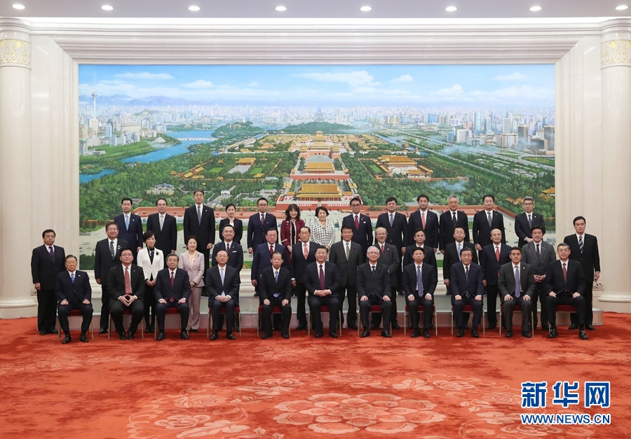 會見后,習近平與參加中日執(zhí)政黨交流機制第七次會議部分日方代表合影留念。