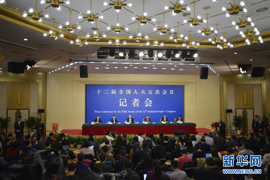 3月10日,十二屆全國人大五次會議新聞中心舉行記者會,邀請中國人民銀行行長周小川、副行長易綱、副行長兼國家外匯管理局局長潘功勝、副行長范一飛就“金融改革與發(fā)展”的相關(guān)問題回答中外記者的提問。圖為記者會現(xiàn)場。新華網(wǎng)/中國政府網(wǎng) 孫韜 攝