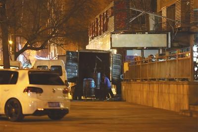 4月12日晚9時30分,延靜里中街的玉林烤鴨店門口,“京Q**880”如常???,裝上兩桶泔水后,駛離。記者 李明