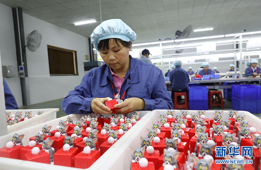 英德市連江口鎮(zhèn)連樟村扶貧工廠的工人在檢查玩具產(chǎn)品的質(zhì)量。2017年村里通過(guò)產(chǎn)業(yè)扶貧引入企業(yè)落戶到村,讓村民實(shí)現(xiàn)了家門(mén)口就業(yè)(10月24日攝)。新華社記者王瑞平攝
