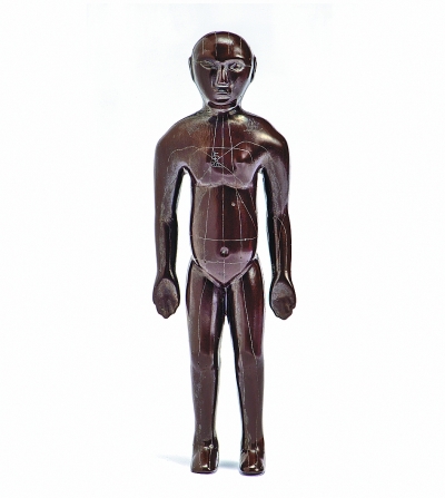 經(jīng)脈腧穴理論是中醫(yī)理論體系的重要組成部分,是針灸學(xué)術(shù)和臨床實(shí)踐的核心理論。腧穴最早的記載形式為文字,而后有繪圖,最后才有模型。目前已知有關(guān)經(jīng)脈的記載最早見于馬王堆漢墓出土的帛書,但僅有文字資料,缺少直觀形象的人體經(jīng)穴圖或?qū)嵨镒鳛檠芯繀⒄瘴?,一些?jīng)脈的具體走向和腧穴的準(zhǔn)確位置難以明確。1993年,四川綿陽雙包山漢墓出土的針灸漆人,打破了實(shí)物資料缺乏的困境,但該人像僅有經(jīng)脈循行,并無腧穴標(biāo)識(shí),且保存不完整,可考證的信息相對不全。“天回醫(yī)簡”及經(jīng)穴漆人像的出土,再次為早期經(jīng)脈腧穴理論的研究提供了客觀的文字資料和形象的醫(yī)學(xué)模型。