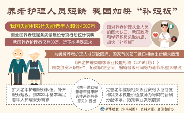 新華社北京11月5日電(記者田曉航)來自全國老齡辦的數(shù)據(jù)顯示,我國失能和部分失能老年人超過4000萬,而全國養(yǎng)老院服務(wù)質(zhì)量建設(shè)專項(xiàng)行動統(tǒng)計(jì)表明,我國養(yǎng)老護(hù)理員僅有30萬,遠(yuǎn)不能滿足需求。面對養(yǎng)老護(hù)理從業(yè)人員的巨大缺口,我國政府和學(xué)界積極采取措施,加快“補(bǔ)短板”。