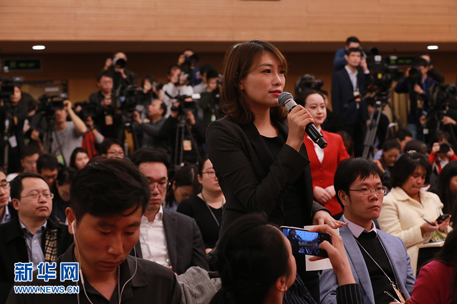 十三屆全國(guó)人大二次會(huì)議新聞中心于3月6日(星期三)上午10時(shí)在梅地亞中心新聞發(fā)布廳舉行記者會(huì),邀請(qǐng)國(guó)家發(fā)展改革委主任何立峰,副主任寧吉喆、連維良就“大力推動(dòng)經(jīng)濟(jì)高質(zhì)量發(fā)展”相關(guān)問題回答中外記者的提問。圖為中央廣播電視總臺(tái)央視記者提問。新華網(wǎng)/中國(guó)政府網(wǎng) 馬娟 攝