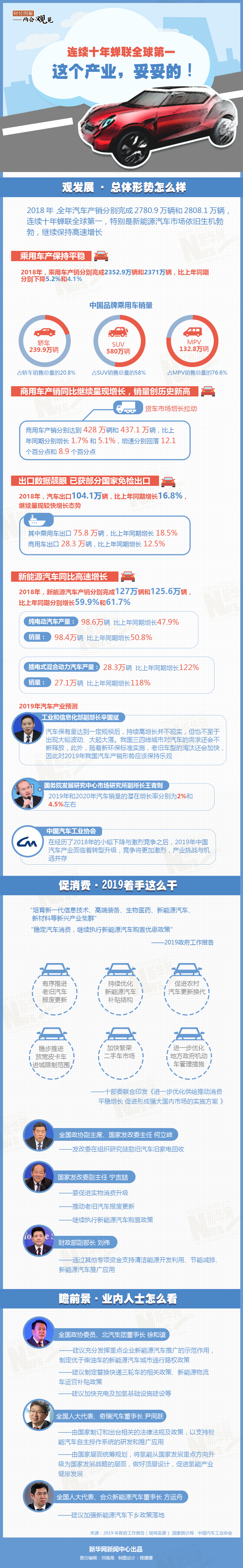 新華網(wǎng)北京3月14日電(劉緒堯 何凡)2018年,我國(guó)汽車工業(yè)總體運(yùn)行平穩(wěn),受政策因素和宏觀經(jīng)濟(jì)的影響,產(chǎn)銷量低于年初預(yù)期,但依舊連續(xù)十年蟬聯(lián)全球第一。