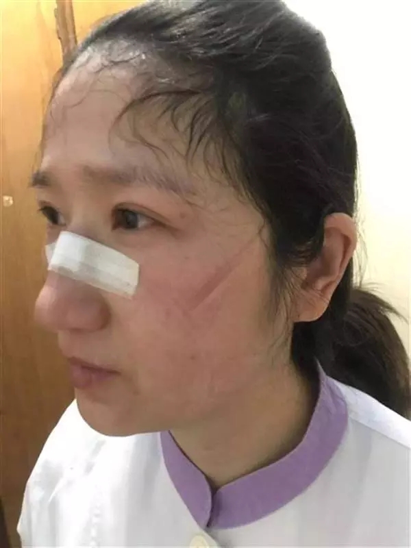 連續(xù)穿戴防護(hù)服6個小時,臉上留下深深的“最美印痕”。