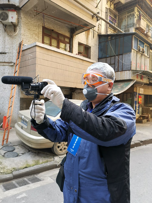 2月5日,才揚在武漢采訪時的工作照。