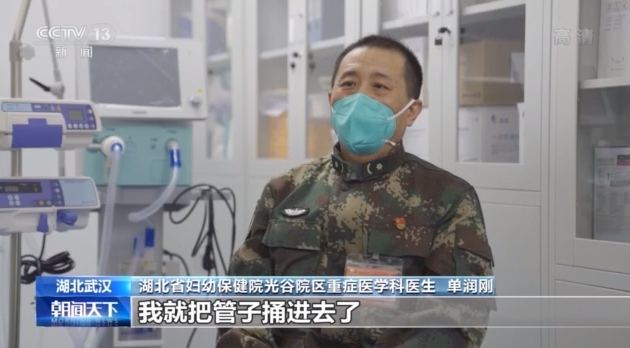 湖北省婦幼保健院光谷院區(qū)重癥醫(yī)學(xué)科醫(yī)生、危重癥患者救治突擊隊隊員 單潤剛:我們在吸氣的時候,聲門會變大,變大那一瞬間我就把管子插進(jìn)去了,也就零點幾秒,不到一秒鐘。