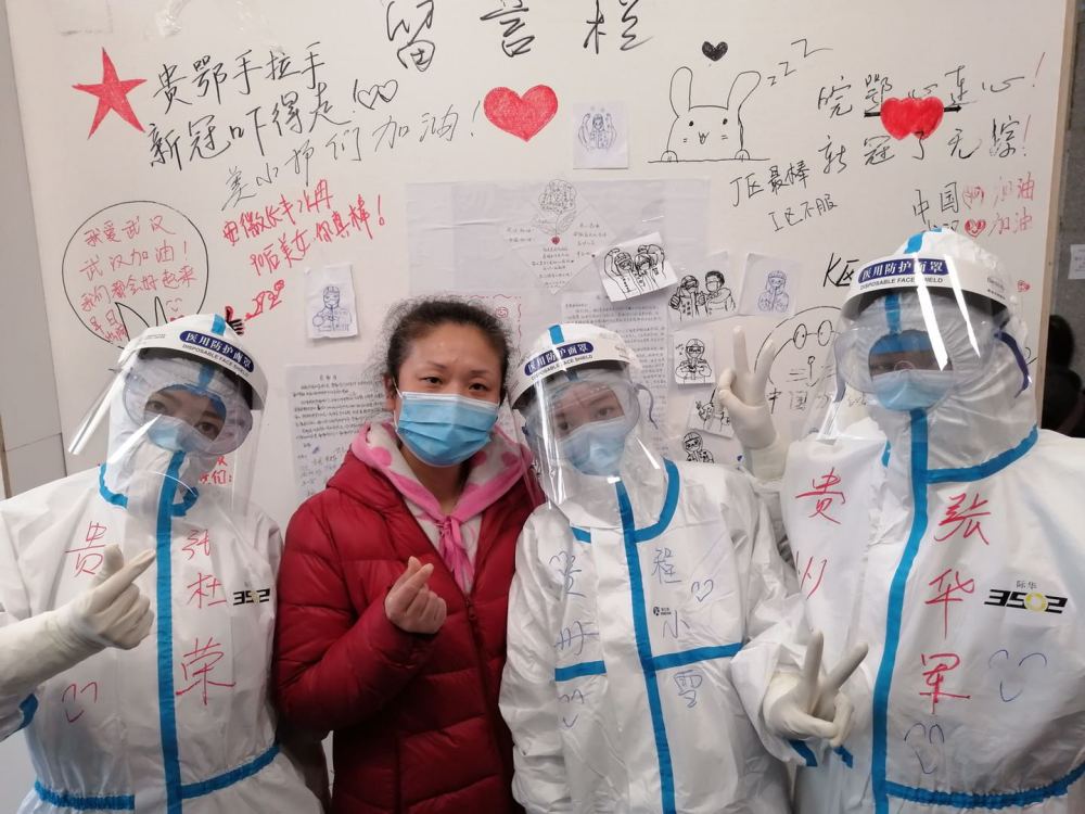 圖為貴州醫(yī)科大學(xué)附屬醫(yī)院援武漢醫(yī)療隊(duì)程小雪與患者和同事們。