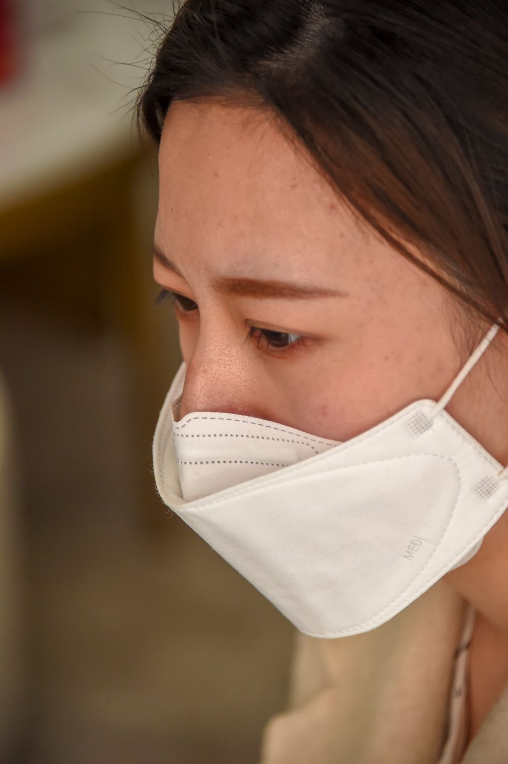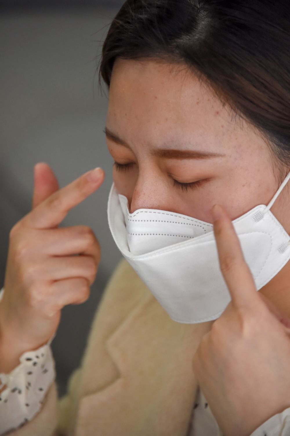 戴口罩,很疼。”