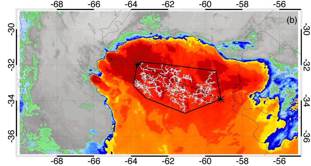 衛(wèi)星照片:?jiǎn)未纬掷m(xù)時(shí)間最長(zhǎng)閃電2019年3月4日發(fā)生在阿根廷北部。(圖片來(lái)源:世界氣象組織網(wǎng)站)