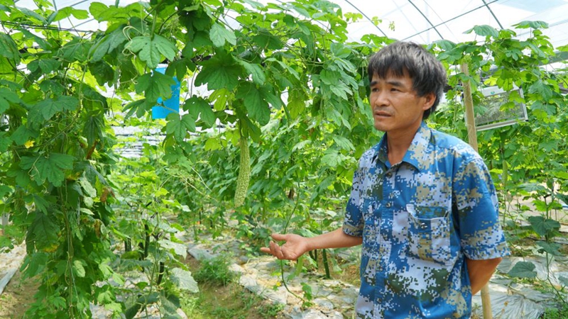 “我們早上6點就起來了,要趕在10點半之前將這些采摘上來的苦瓜裝車運往贛州市區(qū)。”謝來龍說,現(xiàn)在每天都能摘800斤到1000斤苦瓜,企業(yè)來地里收購,每斤能賣到2.2元。