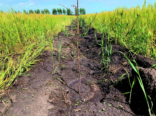 上圖:8月2日,陳巴爾虎旗特尼河林場(chǎng)大片麥田、油菜田,被鏟出一道道黑綠相間的“斑馬線”。中圖:8月2日,陳巴爾虎旗特尼河林場(chǎng)一處被毀的麥田。下圖:8月2日,陳巴爾虎旗特尼河林場(chǎng)一處被毀的麥田里,一些突擊種上的樹(shù)苗已經(jīng)枯萎。 本報(bào)記者王靖攝