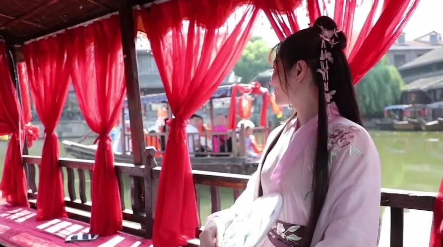 蔡乃武告訴記者,南宋建都杭州后,以北宋汝窯、官窯為代表的北方青瓷技藝和以越窯為代表的當(dāng)?shù)厍啻杉妓噷?shí)現(xiàn)了融會(huì)貫通,推動(dòng)了龍泉青瓷技藝在南宋中后期進(jìn)入鼎盛期。這件硯滴胎釉精致美觀,造型恰到好處:兩側(cè)有雕欄,中間是亭式船艙,尾部是小卷棚,船錨、櫓槳等細(xì)部的處理也非常精致;船艙里兩人并坐,而船夫已經(jīng)棄槳泊船,正在探身欲取下艙頂?shù)亩敷?,他的衣裾則飄向船尾。