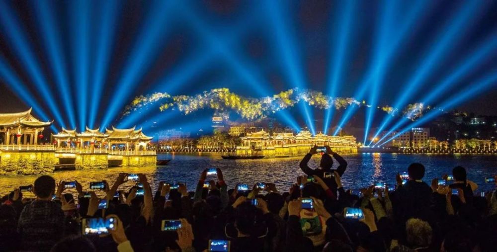市民和游客欣賞韓江上的燈光秀表演。新華社發(fā) 張偉雄 攝