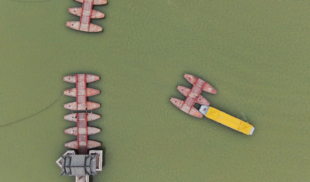 ↑ 為便于船舶通行,廣濟(jì)橋的浮橋會(huì)定時(shí)移走。