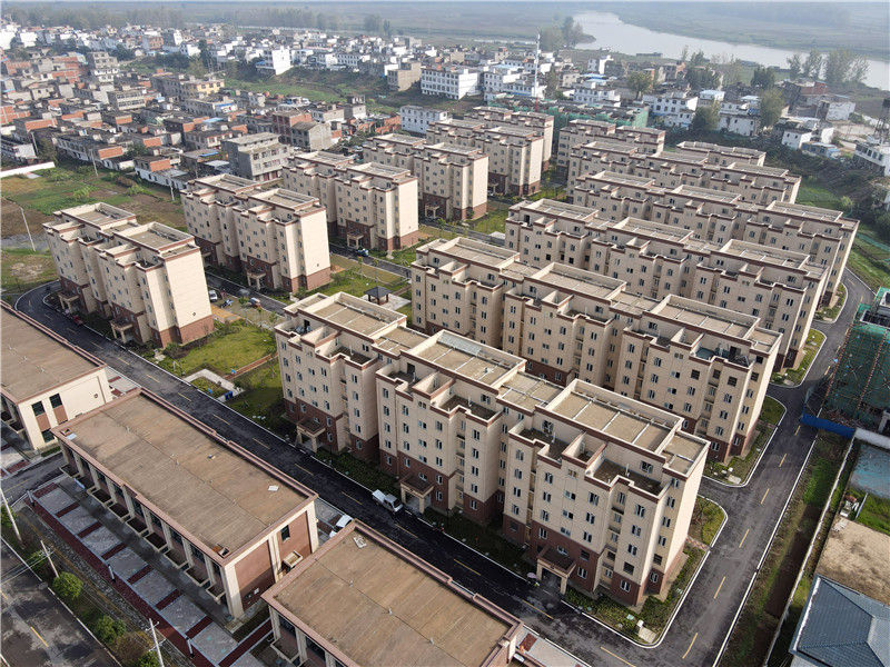 這是位于安徽省阜南縣王家壩鎮(zhèn)淮上社區(qū)的莊臺(tái)疏解降容工程居民安置點(diǎn)(10月16日攝,無人機(jī)照片)。新華社記者 周牧 攝
