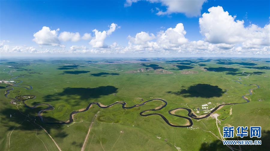 2019年8月25日拍攝的內(nèi)蒙古呼倫貝爾市陳巴爾虎旗境內(nèi)的莫日格勒河局部(無人機照片)。新華社記者 沈伯韓 攝