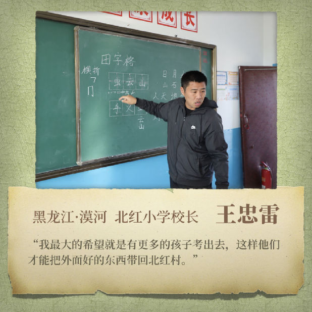 這所位于黑龍江省漠河市北極鎮(zhèn)北紅村的北紅小學(xué)只有兩位老師、3個(gè)年級(jí)和11名學(xué)生?!?0后”校長(zhǎng)王忠雷每天在數(shù)學(xué)、體育、思想品德三個(gè)科目中“周旋”。打開(kāi)課件,他向?qū)W生熟練講授“體積與容積”相關(guān)知識(shí)的時(shí)候,隔壁教室傳來(lái)妻子于晶的語(yǔ)文課上孩子們瑯瑯的讀書(shū)聲……