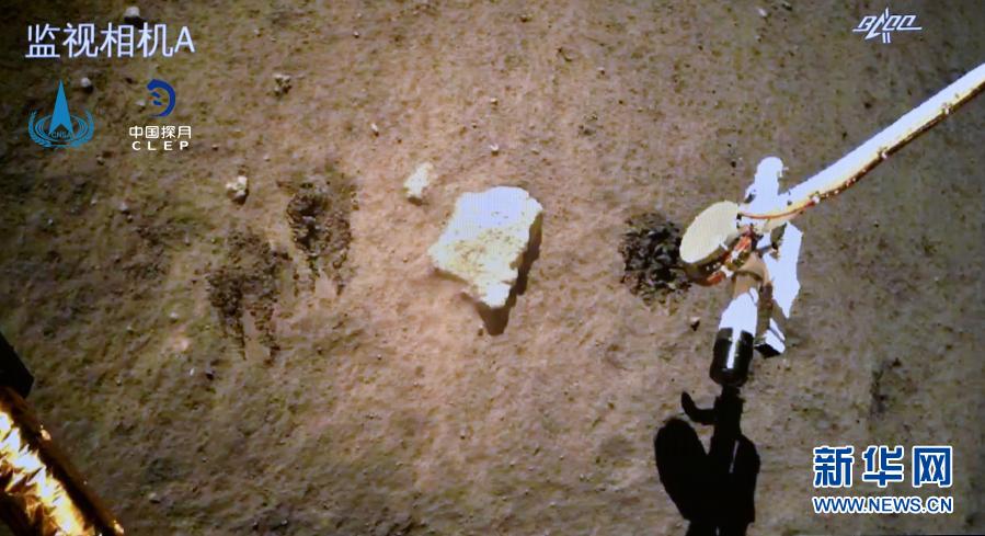 12月2日,嫦娥五號探測器在月球表面自動(dòng)采樣。