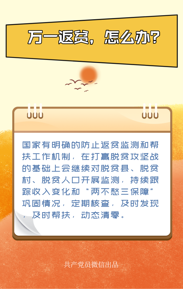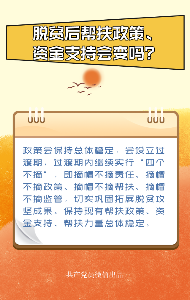 經(jīng)過8年持續(xù)奮斗,我們?nèi)缙谕瓿闪诵聲r代脫貧攻堅目標(biāo)任務(wù),現(xiàn)行標(biāo)準(zhǔn)下農(nóng)村貧困人口全部脫貧,貧困縣全部摘帽,消除了絕對貧困和區(qū)域性整體貧困,近1億貧困人口實現(xiàn)脫貧,取得了令全世界刮目相看的重大勝利。脫貧后是不是就沒有貧困問題了?脫貧后幫扶政策、資金支持會變嗎?萬一返貧,怎么辦?這些大家最關(guān)心的問題,都有明確答案。