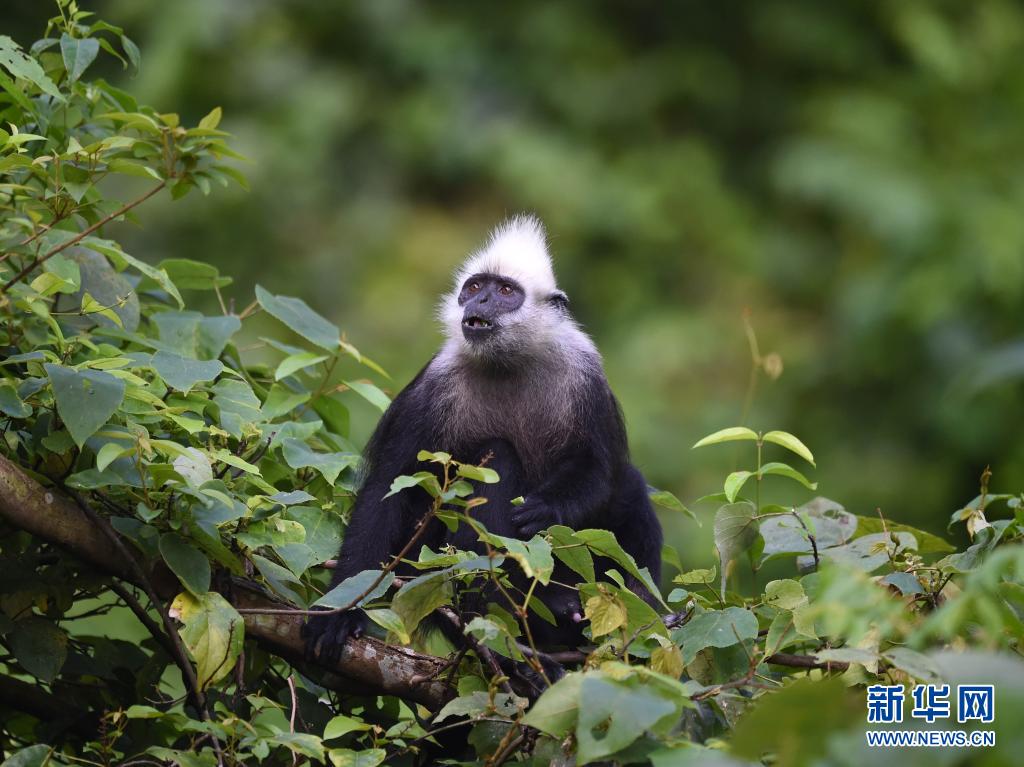 廣西崇左白頭葉猴國家級自然保護(hù)區(qū)板利片區(qū)一處山坳里,在族群覓食的時(shí)候,猴王警惕地觀察周圍環(huán)境(2016年8月6日攝)。新華社記者 周華 攝