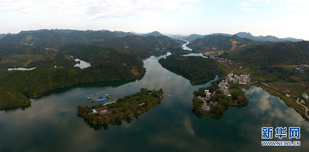 這是廣西巴馬瑤族自治縣賜福湖和長壽島景觀(2018年11月8日攝,無人機(jī)照片)。新華社記者 陸波岸 攝