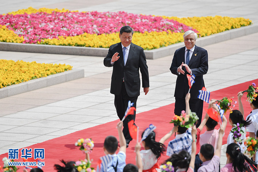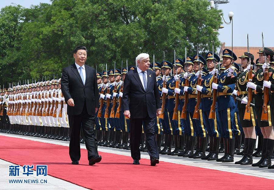 5月14日,國(guó)家主席習(xí)近平在北京人民大會(huì)堂同希臘總統(tǒng)帕夫洛普洛斯舉行會(huì)談。這是會(huì)談前,習(xí)近平在人民大會(huì)堂東門(mén)外廣場(chǎng)為帕夫洛普洛斯舉行歡迎儀式。 新華社記者 張領(lǐng) 攝