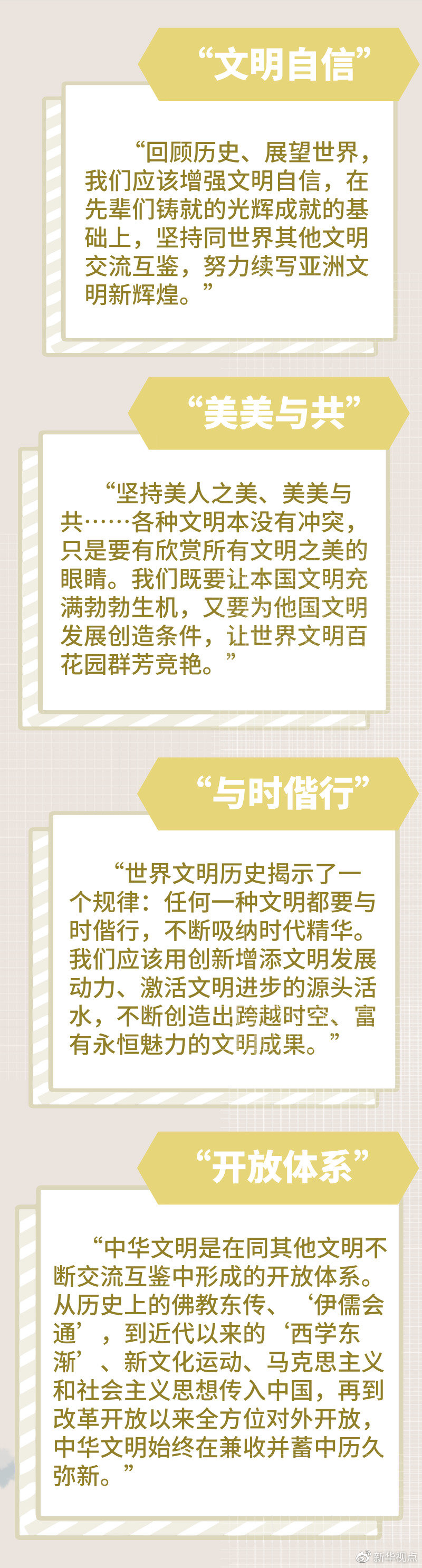 今天,在這場由他倡議召開的文明盛會上,習近平主席進一步闡發(fā)了他的文明觀。