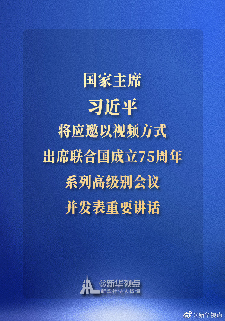 習(xí)近平將應(yīng)邀以視頻方式出席聯(lián)合國成立75周年系列高級別會議并發(fā)表重要講話