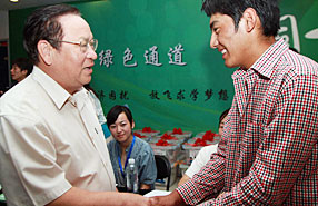 清華大學(xué)校長(zhǎng)顧秉林迎接玉樹新生尕瑪朋措