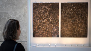 5月18日,游客在西夏博物馆欣赏展出的西夏文物。