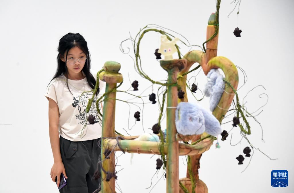 正值周末,市民来到位于北京市海淀区的北京时代美术馆,参观这里举办的《返场时代》展览。据了解,该展览聚焦“90后”的年轻艺术家及其创作,共展出70件(组)作品。