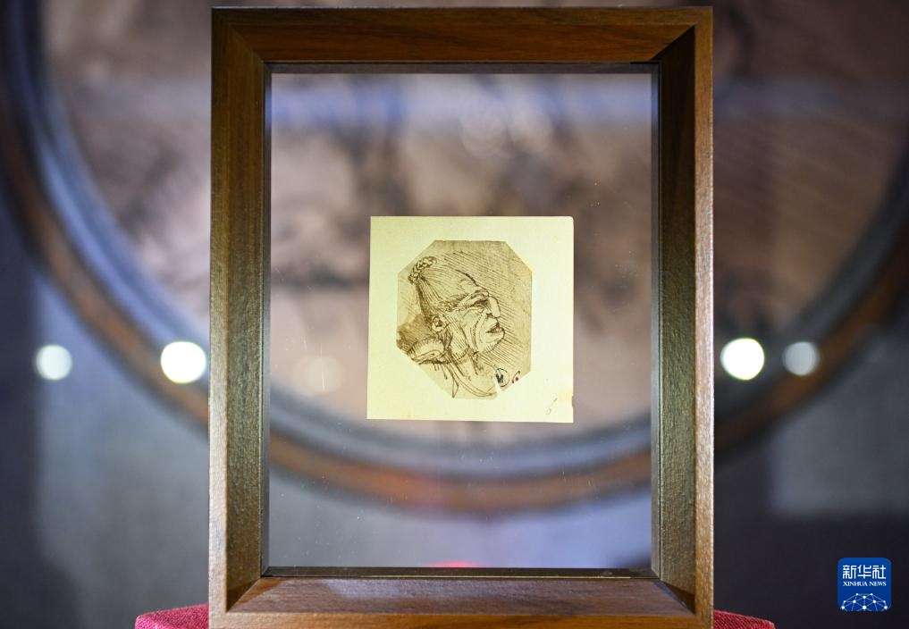 这是6月5日拍摄的达·芬奇手稿残片《老妇人的脸》。