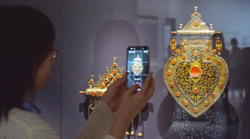 4月15日,在英国首都伦敦,一名女子在维多利亚与阿尔伯特博物馆东馆媒体日活动上参观。