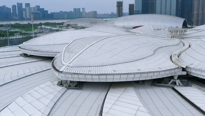 远看好似一朵绽放在钱塘江畔的“大莲花”