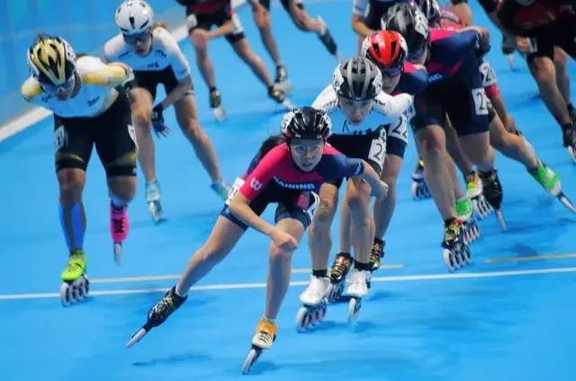 “韵味杭州”2023年中国轮滑系列赛在杭州钱塘轮滑中心亚运轮滑馆正式开赛。图为运动员们脚踏“风火轮”展开激烈竞速。图片来源:杭州日报