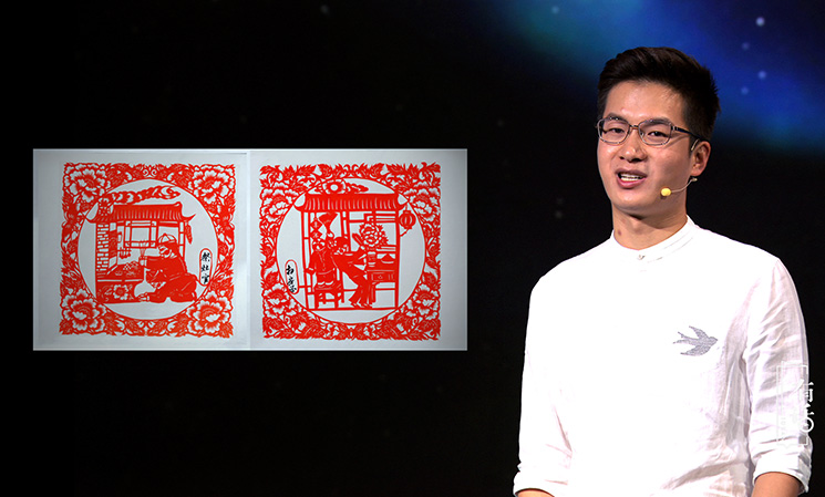 作為一個90后的剪紙傳承人,就要剪一些有新時代特點的剪紙作品。我擅長的是即興創(chuàng)作、脫稿剪紙,速度就是快。我們會了那些傳統(tǒng)的圖案之外,還要能夠看到任何的物體,或者別人給我一個命題就能即時創(chuàng)作。搞剪紙創(chuàng)作一定要豐富自己的知識面,這樣腦海中才會有更多的畫面跟場景。我感覺剪紙是讓我用紙和剪刀在對話,把我的情感通過紙釋放出來。其實是一種靜修,或者自我的享受。我以后要開展的工作,或許是要承擔(dān)著怎樣讓剪紙在00后、10后、20后這些年輕一代的未來人,怎么能認識我們這種傳統(tǒng)藝術(shù),這是我一生要去做的事情。