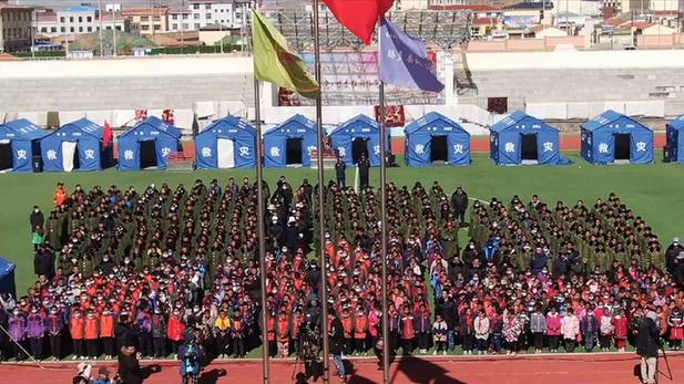 當(dāng)日,青海省果洛藏族自治州瑪多縣地震災(zāi)區(qū)中小學(xué)全面復(fù)課,來自瑪多縣民族寄宿制中學(xué)的八年級(jí)學(xué)生曲邁卓瑪與870多位同學(xué)一起,在帳篷學(xué)校迎來了復(fù)課。