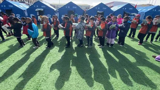 災(zāi)難發(fā)生后,為保障災(zāi)區(qū)盡快恢復(fù)教育教學(xué)秩序,各部門迅速行動(dòng),搭起教學(xué)帳篷。5月24日,曲邁卓瑪和同學(xué)板凳當(dāng)課桌,帳篷成教室,在朗朗讀書聲中,帳篷課堂正式開課。