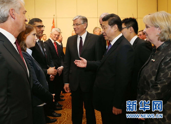 ????招待會開始前,習(xí)近平會見了中德企業(yè)家代表,勉勵兩國企業(yè)抓住機(jī)遇,共同做大中德合作。