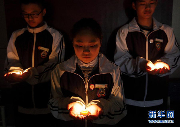 資料圖:學生為馬航失聯客機上的生命祈福 新華社發(fā) 駱善新 攝