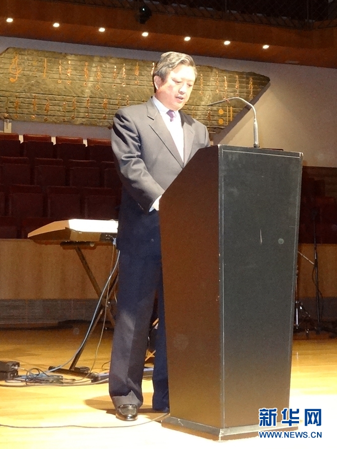 中國(guó)駐西班牙大使朱邦造在音樂(lè)會(huì)前發(fā)表致辭。新華網(wǎng) 周喆攝