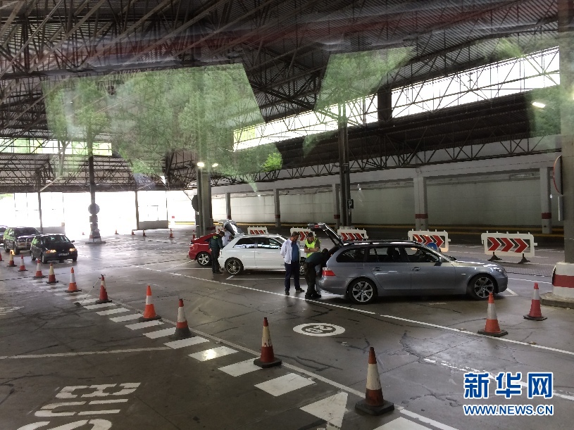 ????西班牙的海關(guān)人員正在抽查從安道爾入境西班牙的車輛。(周喆 攝)