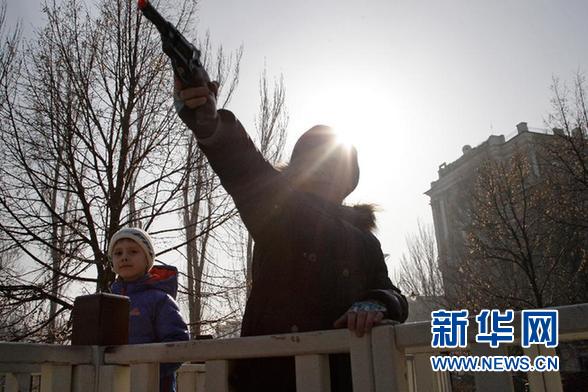 ????資料圖片:2月15日,在烏克蘭東部城市頓涅茨克,一名男孩手持玩具槍在街頭玩耍。烏克蘭武裝力量總參謀部發(fā)言人謝列茲尼奧夫15日說,自當(dāng)?shù)貢r間凌晨3時起,烏東部沖突地區(qū)的槍炮射擊均已停止,?;饏f(xié)議得到遵守。 新華社發(fā)(葉爾莫琴科攝)