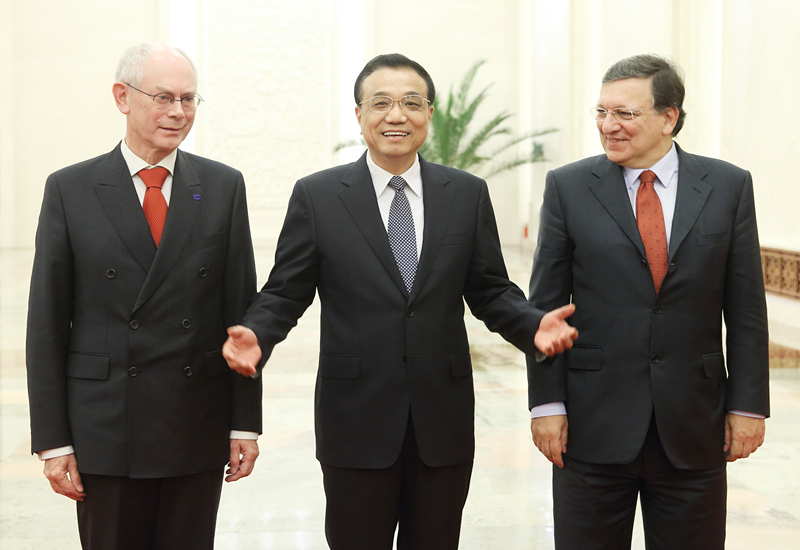 2013年11月21日,國務(wù)院總理李克強在北京人民大會堂同歐洲理事會主席范龍佩、歐盟委員會主席巴羅佐共同主持第十六次中國歐盟領(lǐng)導(dǎo)人會晤。(新華社記者姚大偉攝)