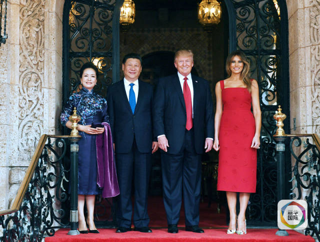 當?shù)貢r間4月6日,國家主席習近平在美國佛羅里達州海湖莊園同美國總統(tǒng)特朗普舉行中美元首會晤。這是習近平和夫人彭麗媛同特朗普和夫人梅拉尼婭合影留念。(新華社記者饒愛民攝)