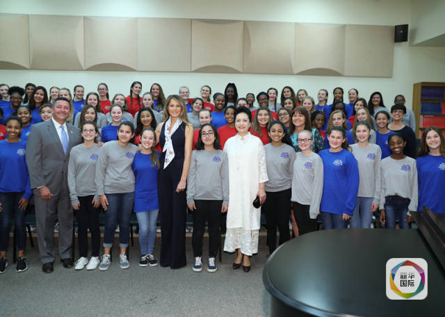 國家主席習近平夫人彭麗媛首先參觀巴克藝術中學的聲樂教室,她親切地向學生們問好,并欣賞幾十名學生們演唱的音樂劇《小婦人》選段《出色》。彭麗媛稱贊學生們唱得很好。