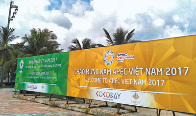 2017年亞太經(jīng)合組織(APEC)領(lǐng)導(dǎo)人會議周將于11月6日在越南峴港拉開帷幕,其間將舉行APEC第二十五次領(lǐng)導(dǎo)人非正式會議。圖為峴港街頭的宣傳牌。記者 劉剛攝