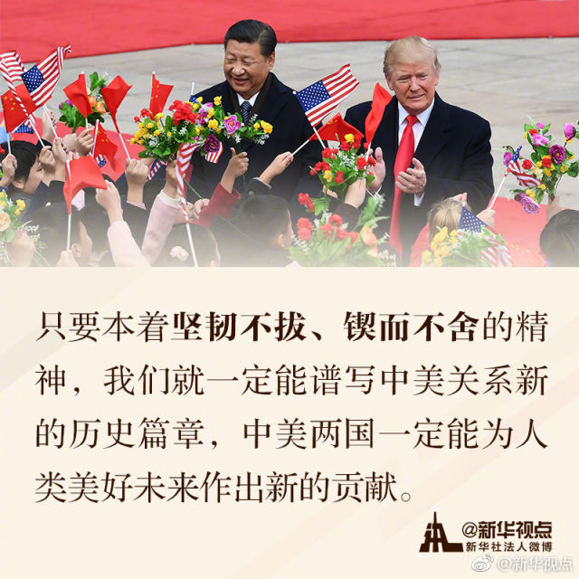 【關(guān)于新時(shí)代的中美關(guān)系,習(xí)近平這樣說】美國總統(tǒng)特朗普訪華期間,對于新時(shí)代的中美關(guān)系,習(xí)近平主席作出了哪些重要論述?為未來中美關(guān)系發(fā)展定下了什么基調(diào)?一起來學(xué)習(xí)這些金句吧!